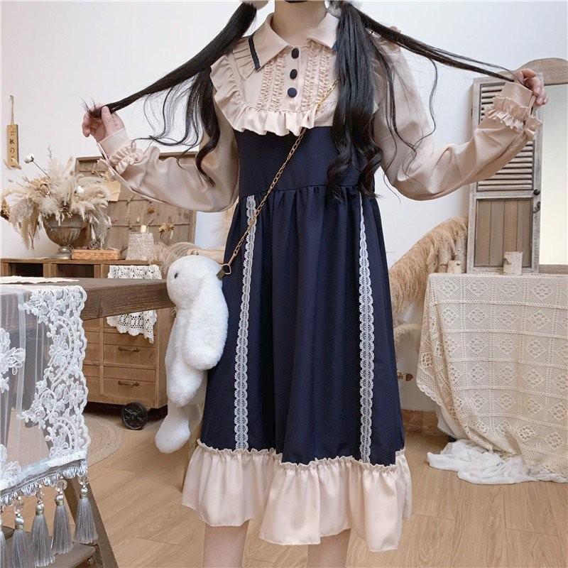 ロリータ風 リボン 長袖 可愛い 日常 通学 同窓会 春夏秋 ワンピース レースチュール フリルスカート 切り込み 少女 Aライン ハイウエスト Zy6329 神龍閣 通販 Yahoo ショッピング